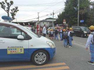 管内の各小学校及びその周辺の通学路において、、松山西地区防犯協会職員・