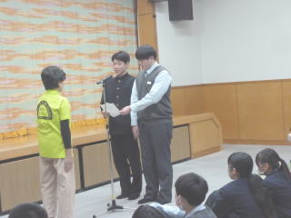 増田総代、松山西署長のあいさつの後、県警本部少年課 福田課長補佐に