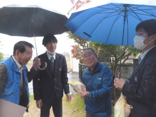 11月25日、和気公民館で一人暮らしの高齢者(約425名)の見守り活動を行う出発式が