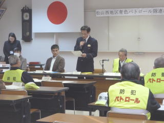 12月23日、松山西署会議室において、管内の青色パトロール隊13団体が参加し、